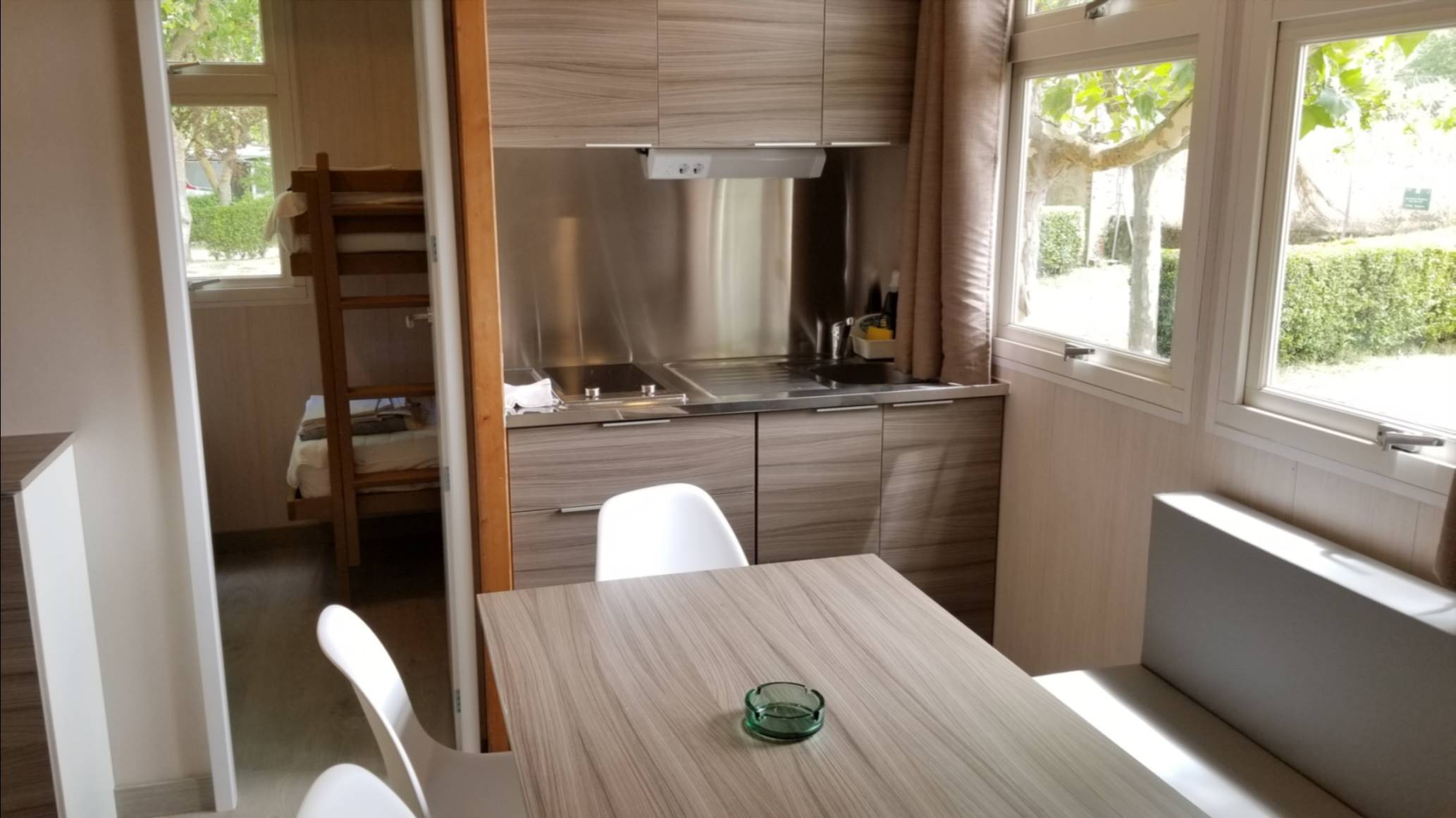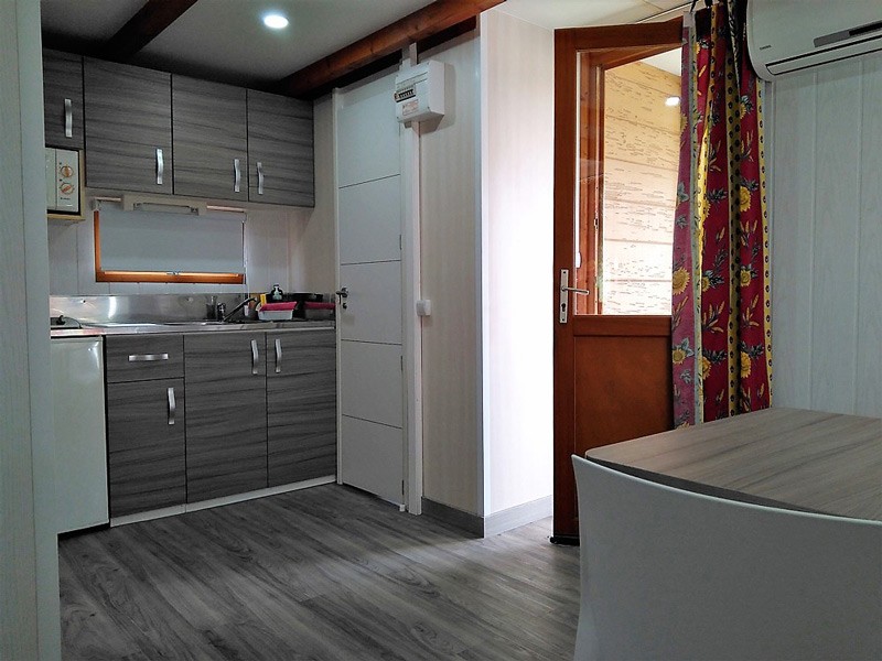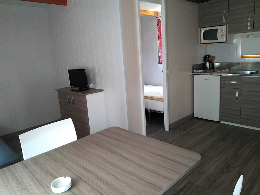Precio hasta 4 personas. Bungalow de 30 m2 con terraza amueblada. Sala de estar con televisión y sofá-cama, aire acondicionado, calefacción, un dormitorio, cuarto de baño completo con agua caliente y cocina equipada. Admite hasta 4 personas. Se admiten perros (con cargo).