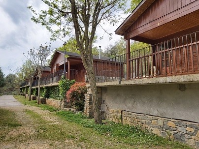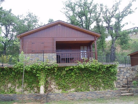 Hay que subir un tramo de escaleras para acceder al Bungalow. Animales de compañia bienvenidos en el Bungalow Encina, ¡consúltanos!