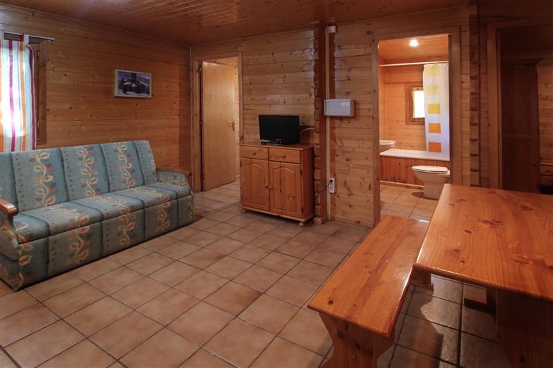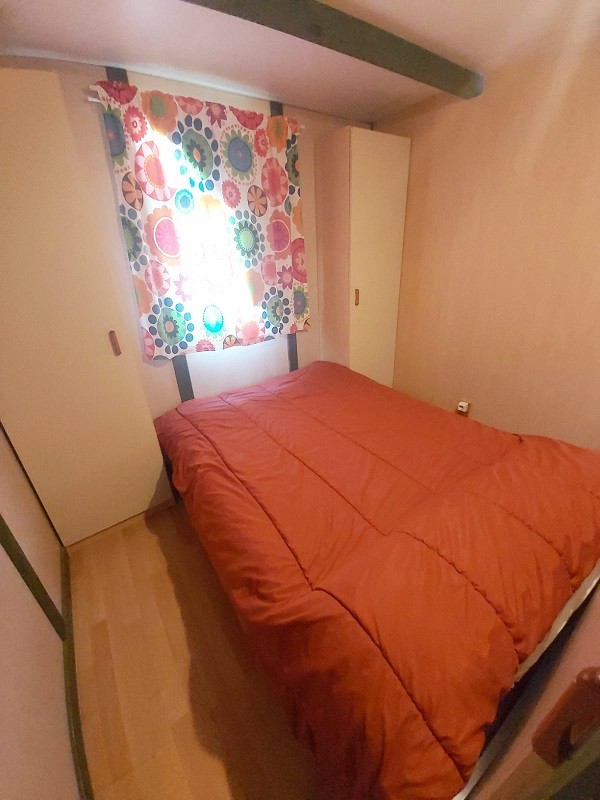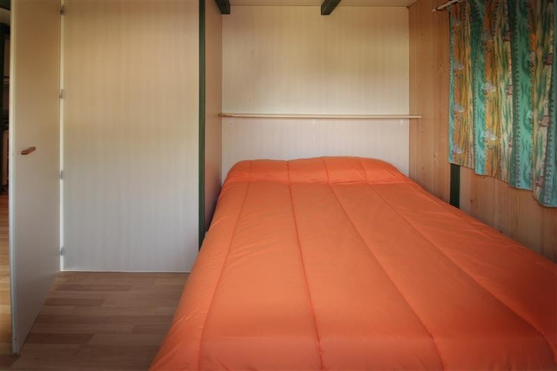 Bungalow de 36 metros cuadrados, con capacidad para 5 personas.2 dormitorios:1 con cama de matrimonio (1,50) y otro con dos camas en literas (90) además del sofa-cama que hay en el salón-cocina. Baño completo con bañera. Cocina equipada con menaje, microondas y nevera grande. Porche y plaza de aparcamiento.