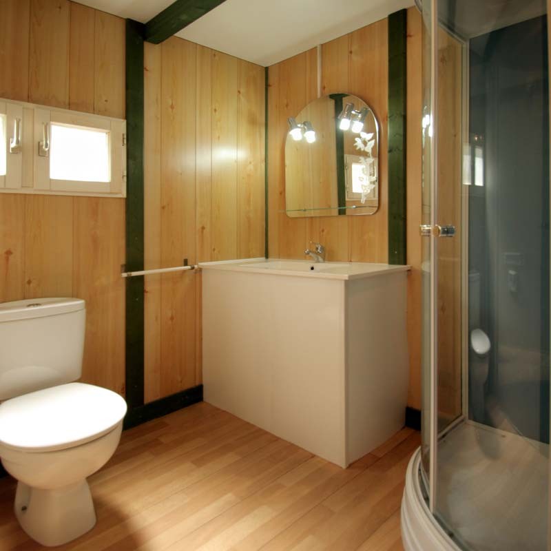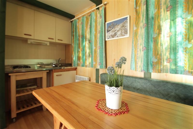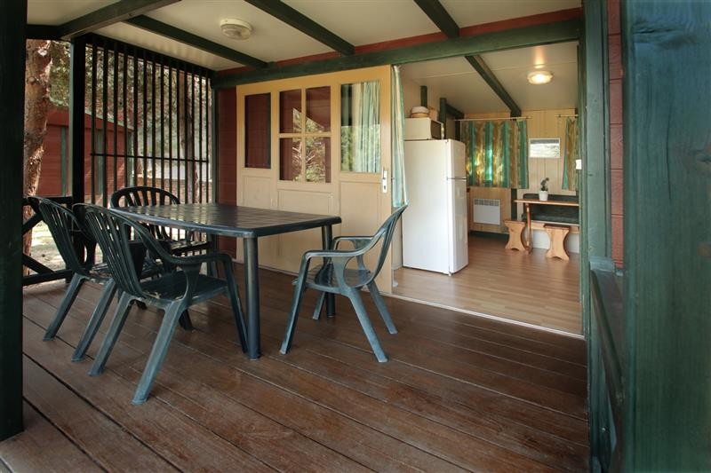 Bungalow de 32 metros cuadrados con capacidad para 5 personas. Están distribuidos en dos dormitorios: uno con cama doble (135cm), y otro con cama doble (120cm) además de una litera con dos camas individuales (70). Baño completo con ducha. Salón-cocina equipada con menaje, tv, microondas, cafetera italiana, tostador y nevera grande. Terraza y plaza de aparcamiento.